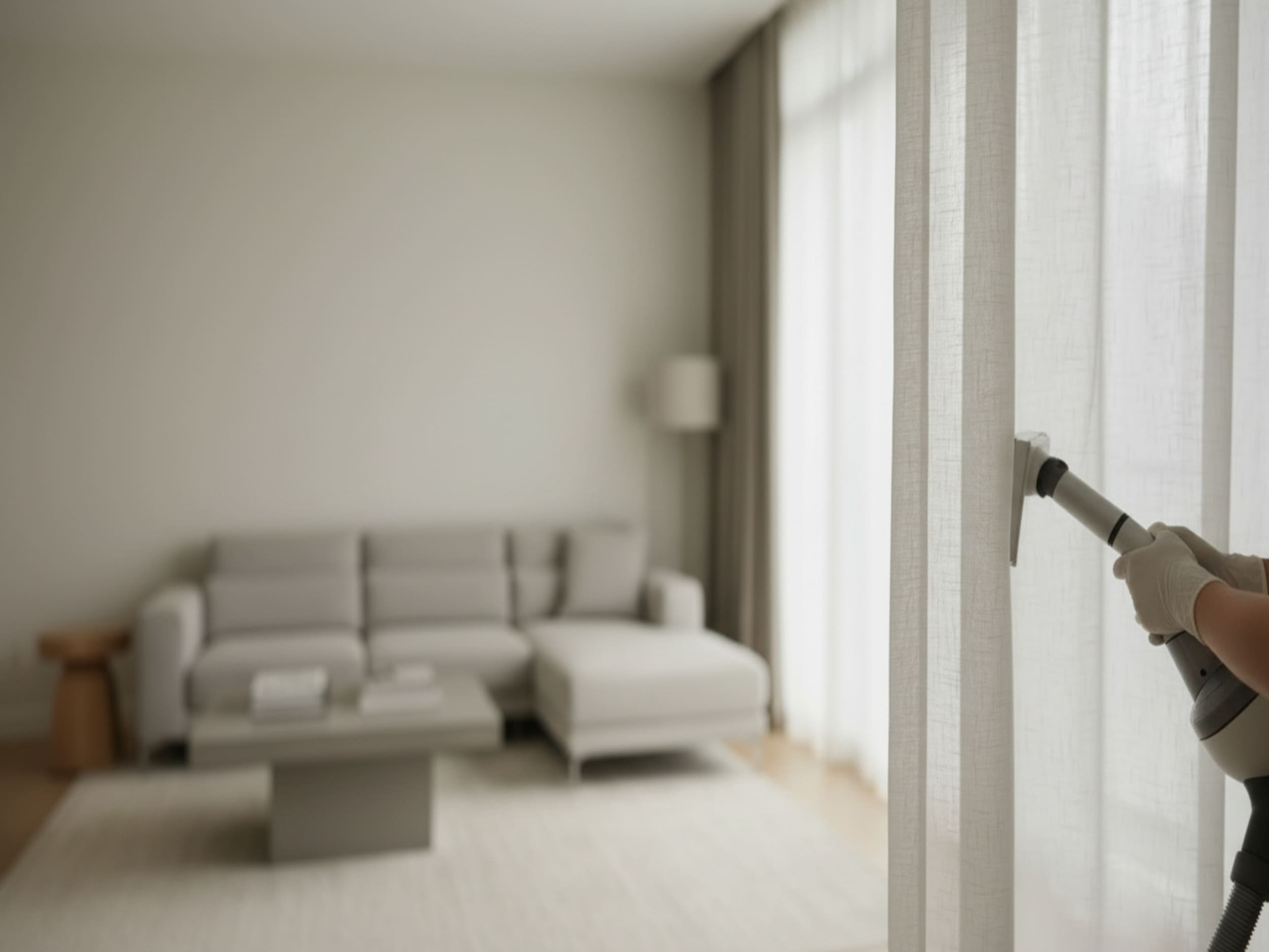 ⏱ 10–20 min Using professional drapery-safe solutions, we clean the entire curtain surface without overwetting or shrinking the fabric. Our methods lift dust, fingerprints, odors, and light stains while maintaining the drapery’s texture and natural drape. Each section is cleaned evenly for consistent results.