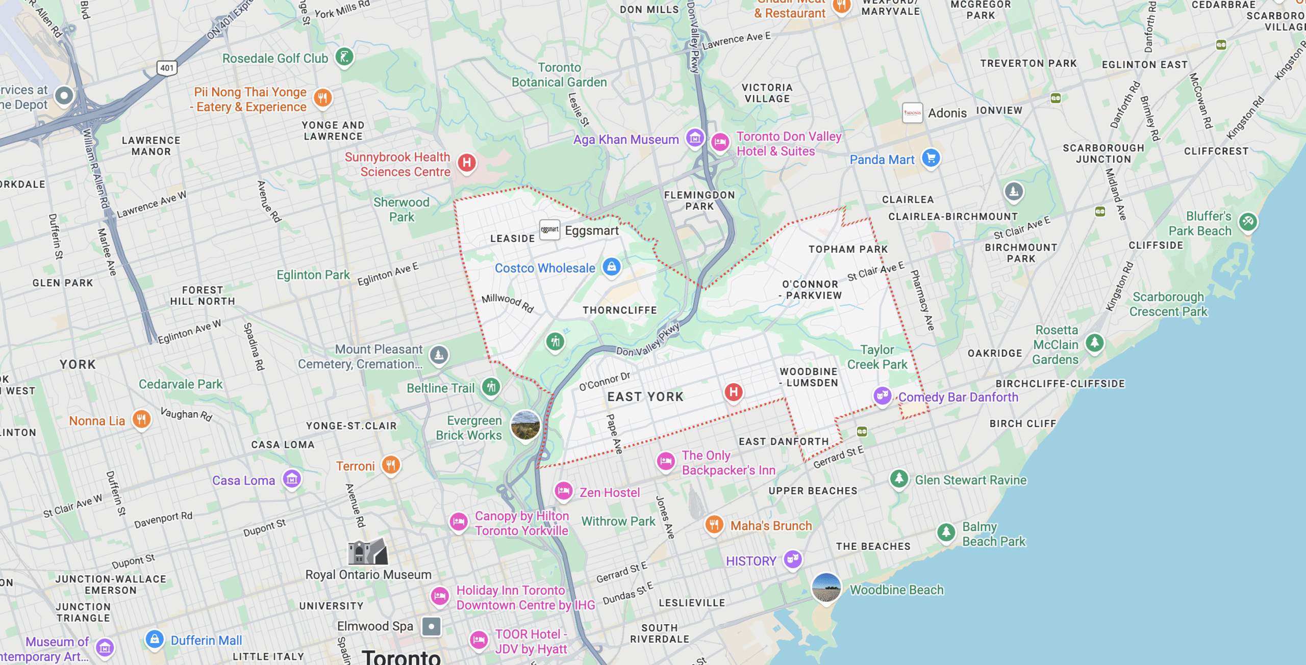 We cover every part of East York - Woodbine Heights, Broadview North, East York Village, O'Connor-Clairlea, Oakridge, Taylor-Massey, The Peanut, Topham Park, Woodbine Corridor, Crescent Town, Danforth Village, Secord, Cosburn, Pape Village, and Monarch Park.