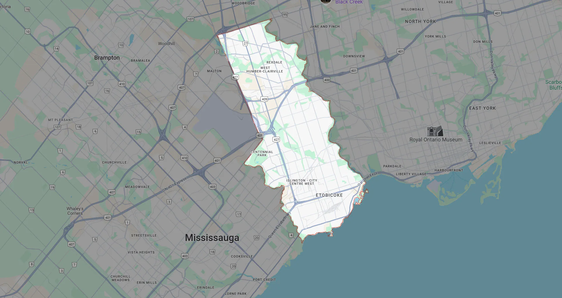 We serve all Etobicoke neighbourhoods including The Kingsway, Mimico, Long Branch, Alderwood, New Toronto, Humber Bay, Islington Village, Rexdale, Thistletown, Markland Wood, Eatonville, and Richview.